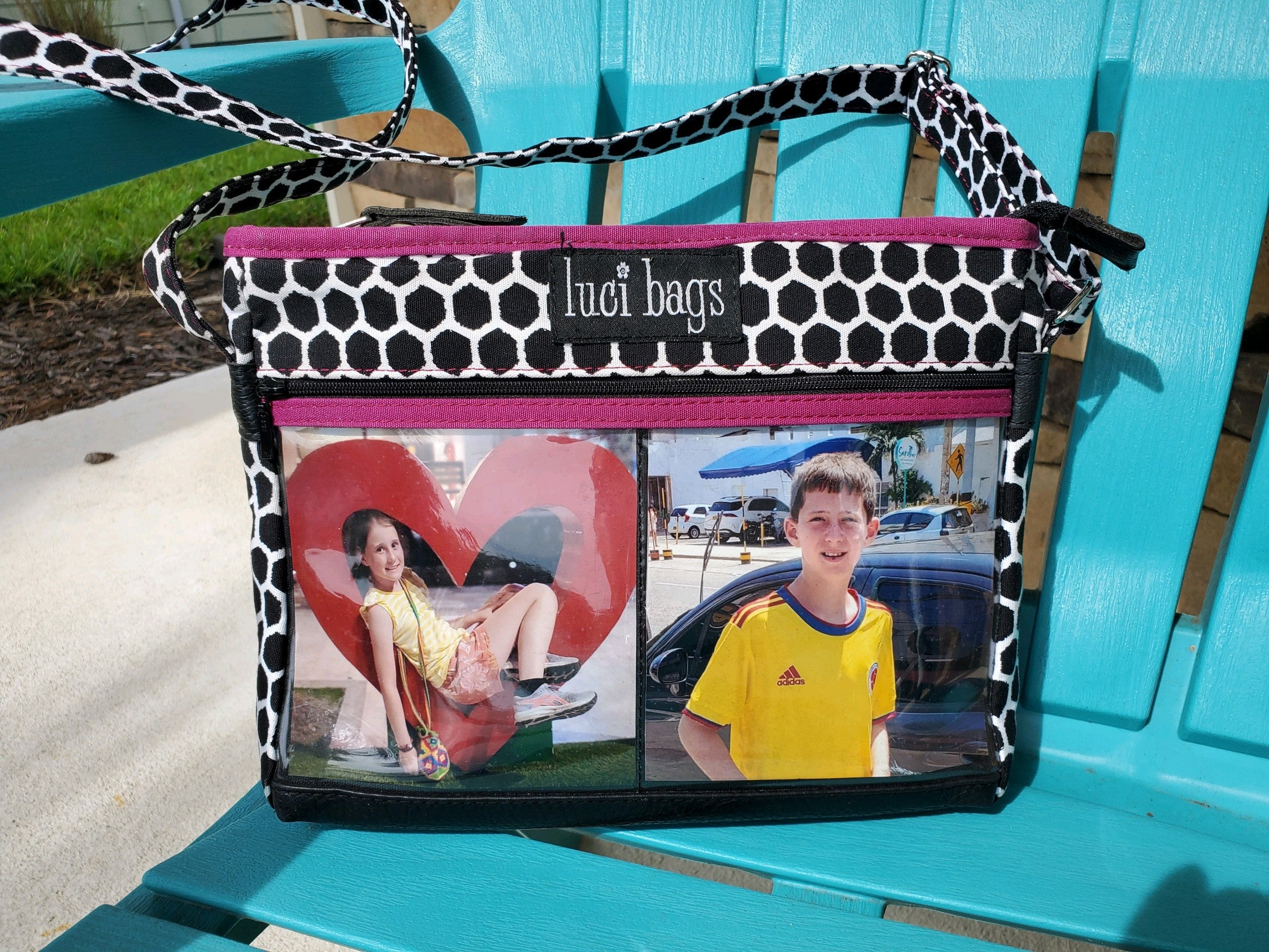 Go ahead - flaunt those snapshots of your adorable grandkids, sweet students, awesome sports star, and charming pets in a Luci Bag Crossbody or Display Purse! Simply select your favorite photos, send to 1-hour photo (matte finish recommended), trim to fit and slide in the display windows. A fun way to showcase your loves or surprise someone special with a personalized gift.