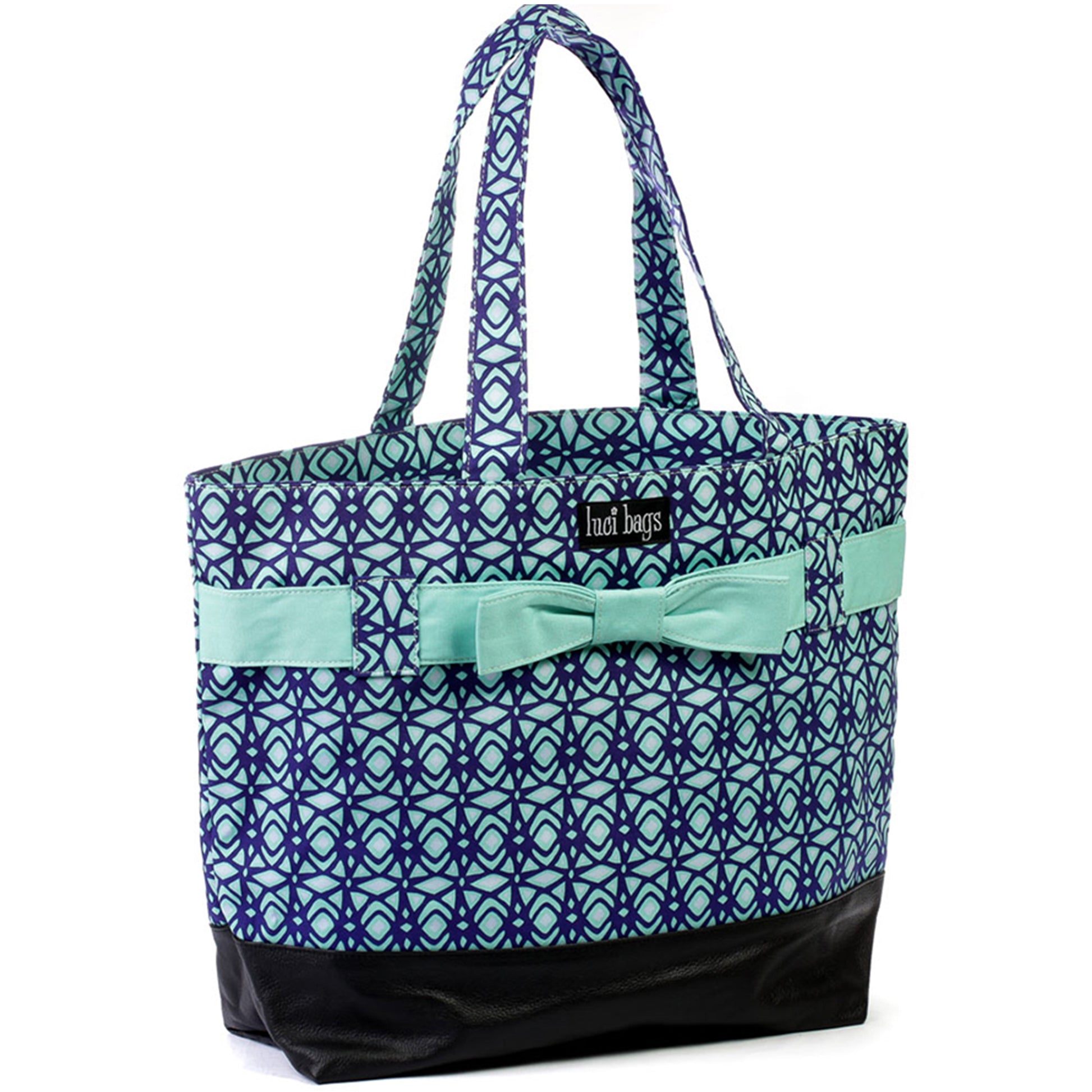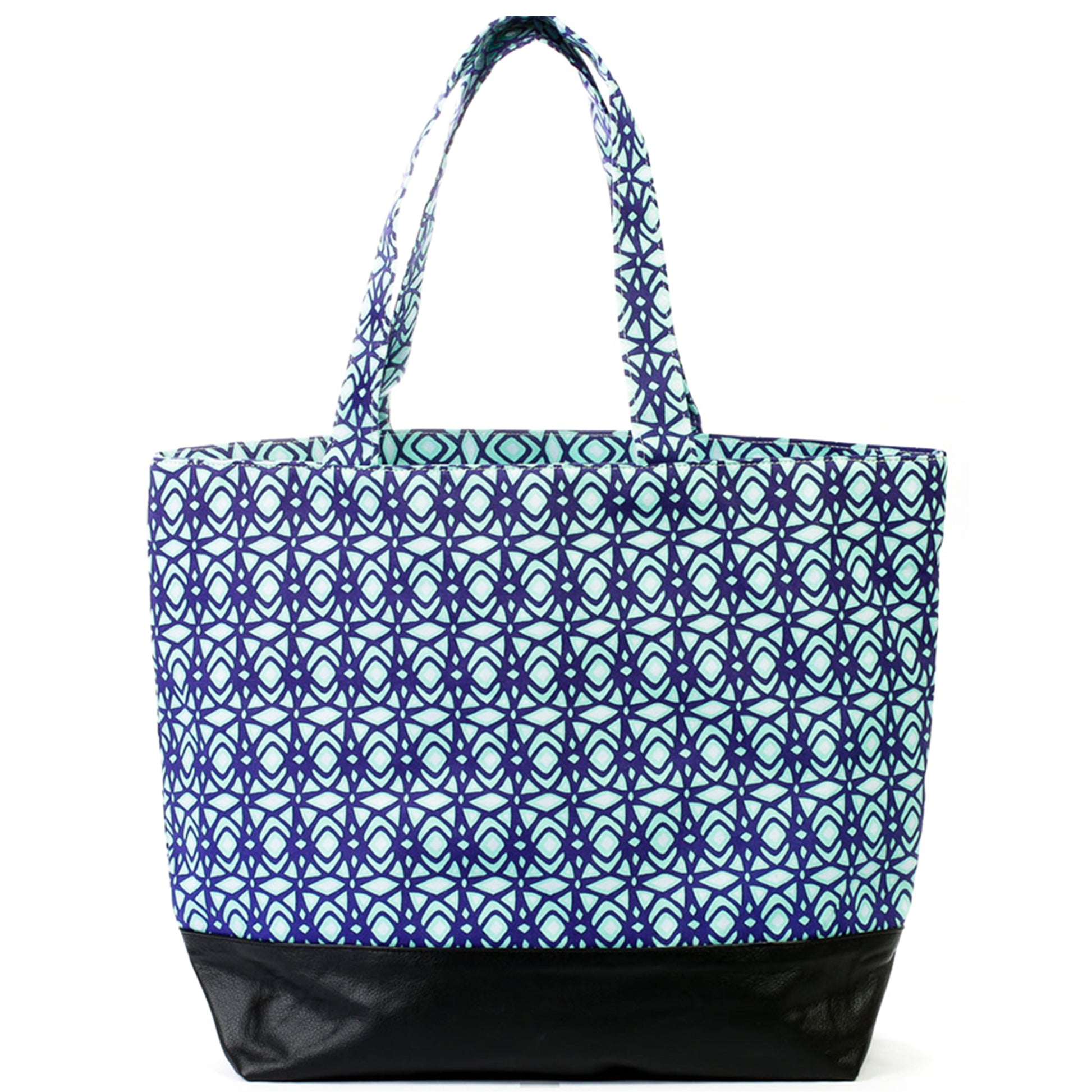 This is the tote bag you've always needed! The Bow Tote makes an excellent beach bag, travel bag, work bag, diaper bag... anything bag. It's simply a huge tote with plenty of interior pockets, a wipeable vegan leather bottom and comfortable extra wide straps.