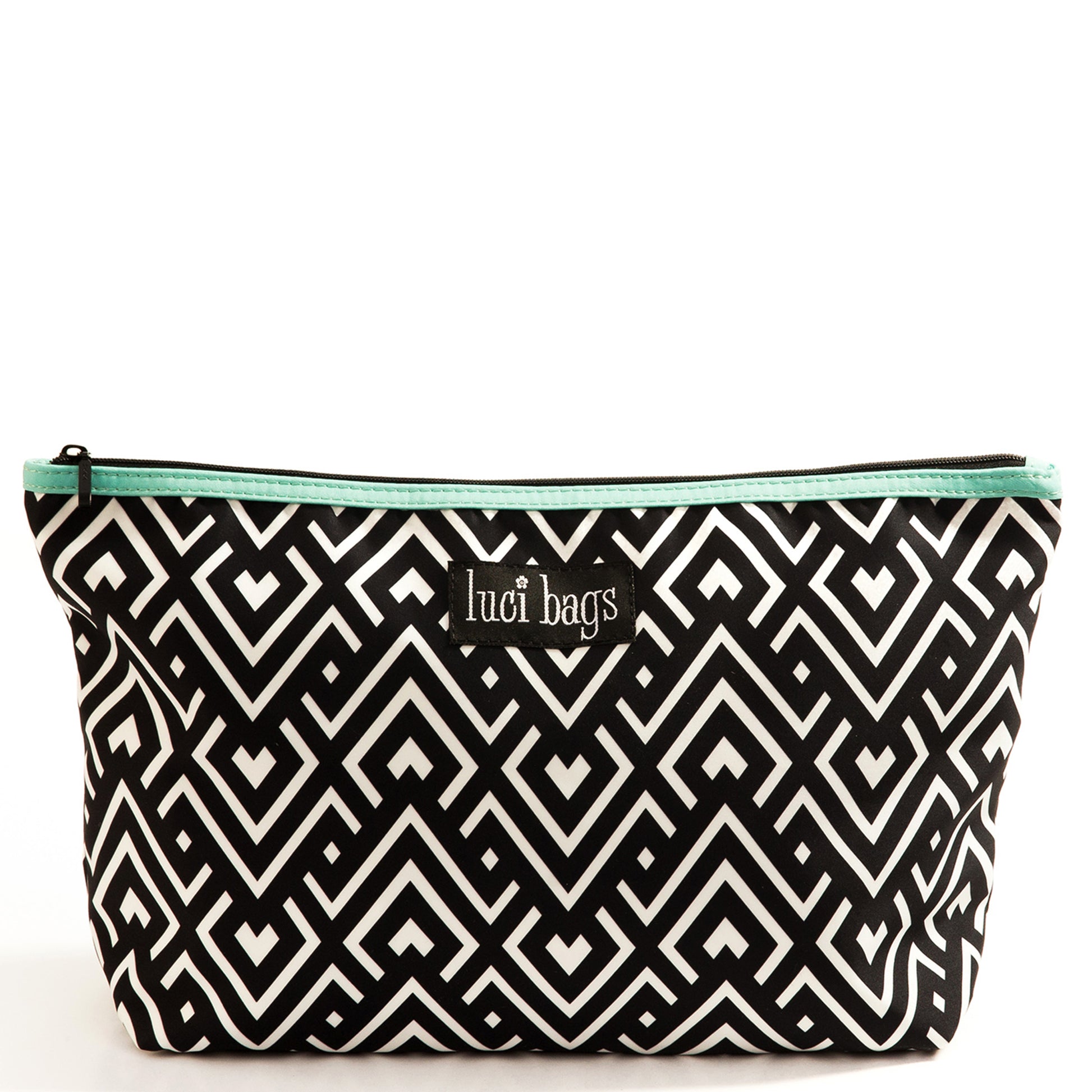 Materials: We paired this polyester {aka wipeable} black and white art deco print with a beautiful seafoam green accent. Zip closure. One interior zipped pocket.