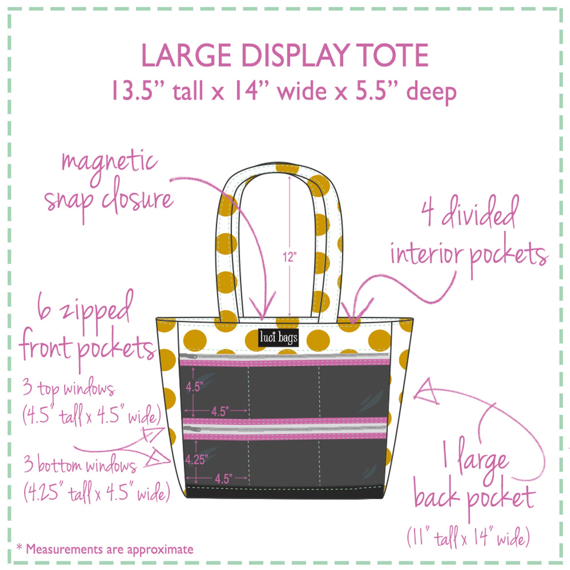 Our biggest display area and most spacious interior - this tote can hold it all! No wonder it's the #1 choice for cash-n-carry sellers, or ladies that just need a super large bag.
