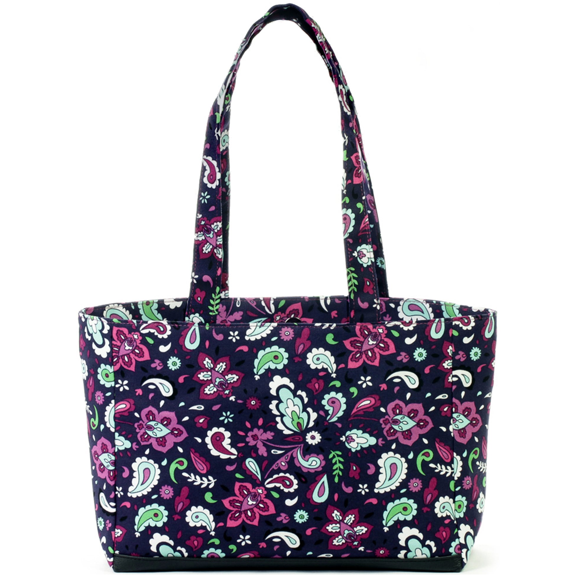 Materials: A dark indigo background makes the vibrant colors of this paisley print POP! Plum purple accents. Black window background & faux leather bottom. Silver magnetic snap closure.