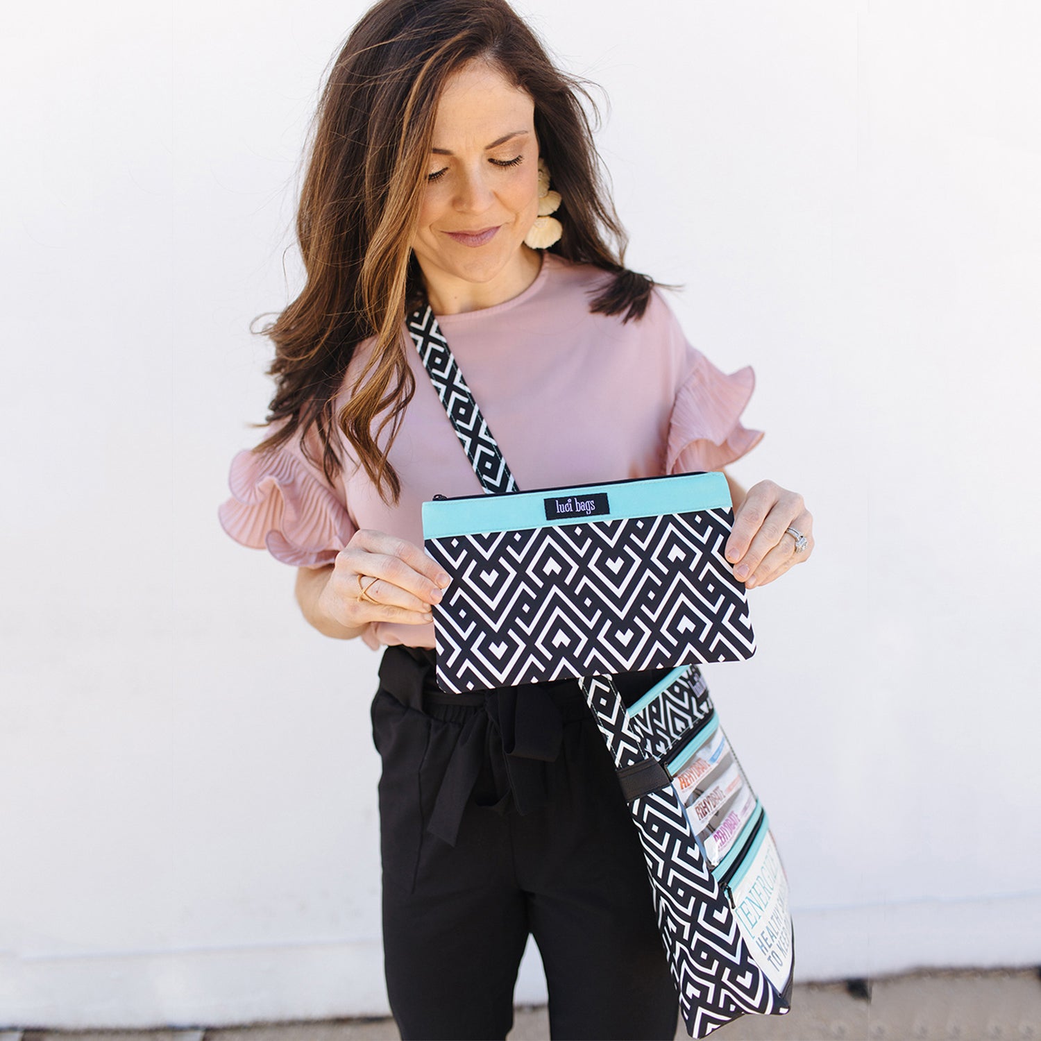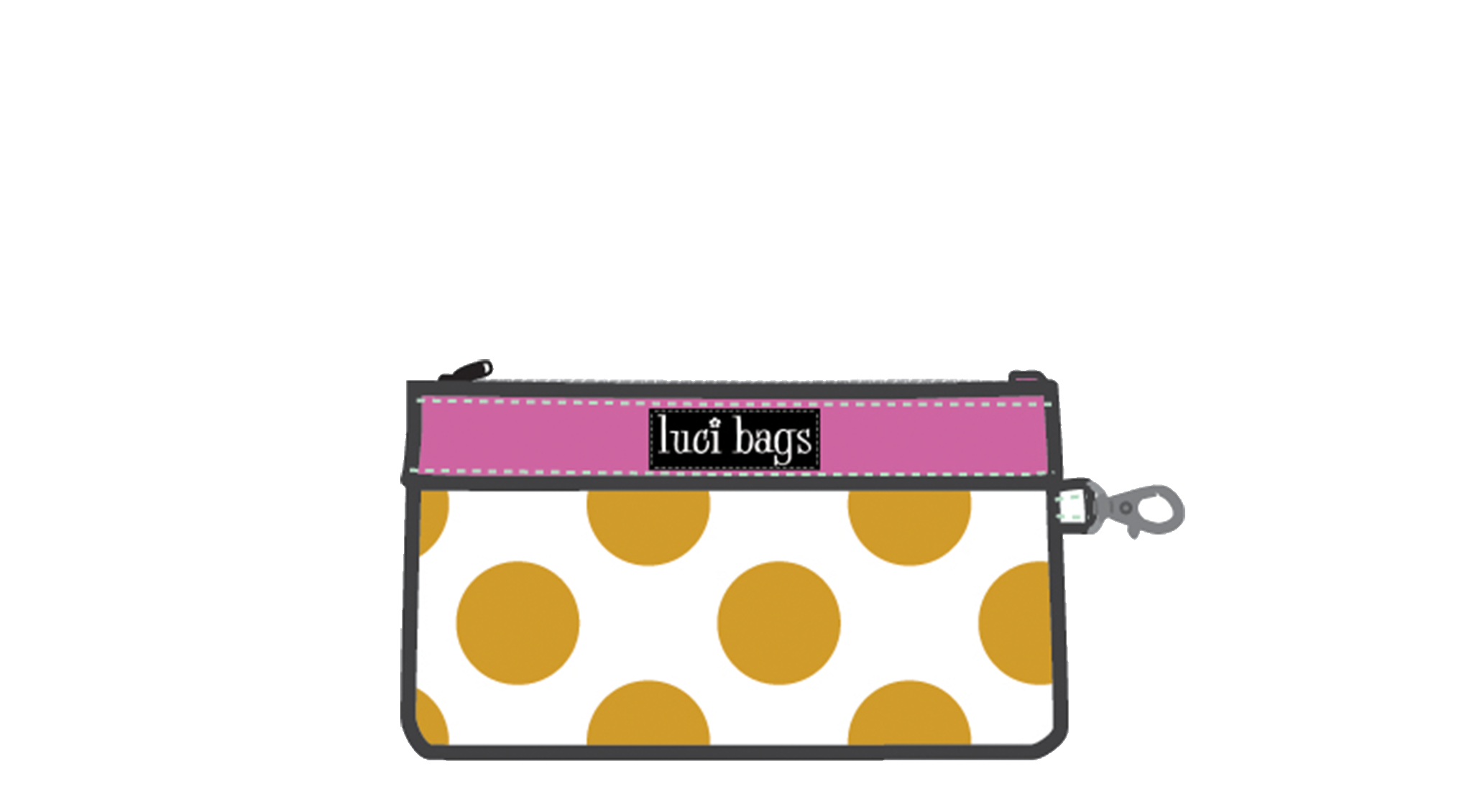 Every Luci accessory started inside my personal tote - a helper to organize my business and life. I needed a LARGE POUCH to protect the credit card machine [so old school] at shows. The LARGE ACCESSORY BAG was designed to quickly grab diapers & wipes when out with my son. A SMALL ACCESSORY BAG with clip was was the answer to keeping my store cards, keys and lipstick from rolling around my purse. To make connecting easier, I sewed the BUSINESS CARD HOLDER. The one bag I use every day? The SMALL POUCH - my daily makeup bag.